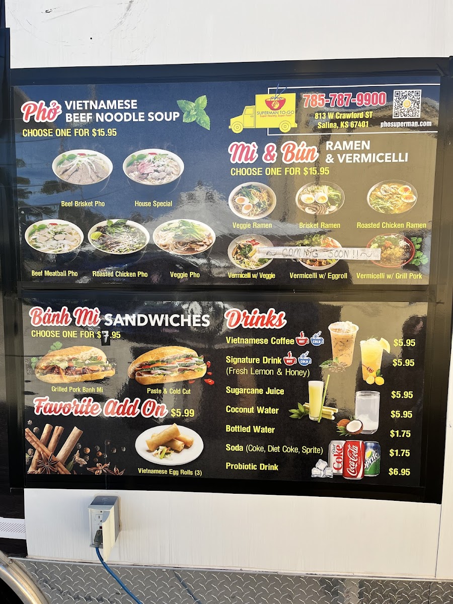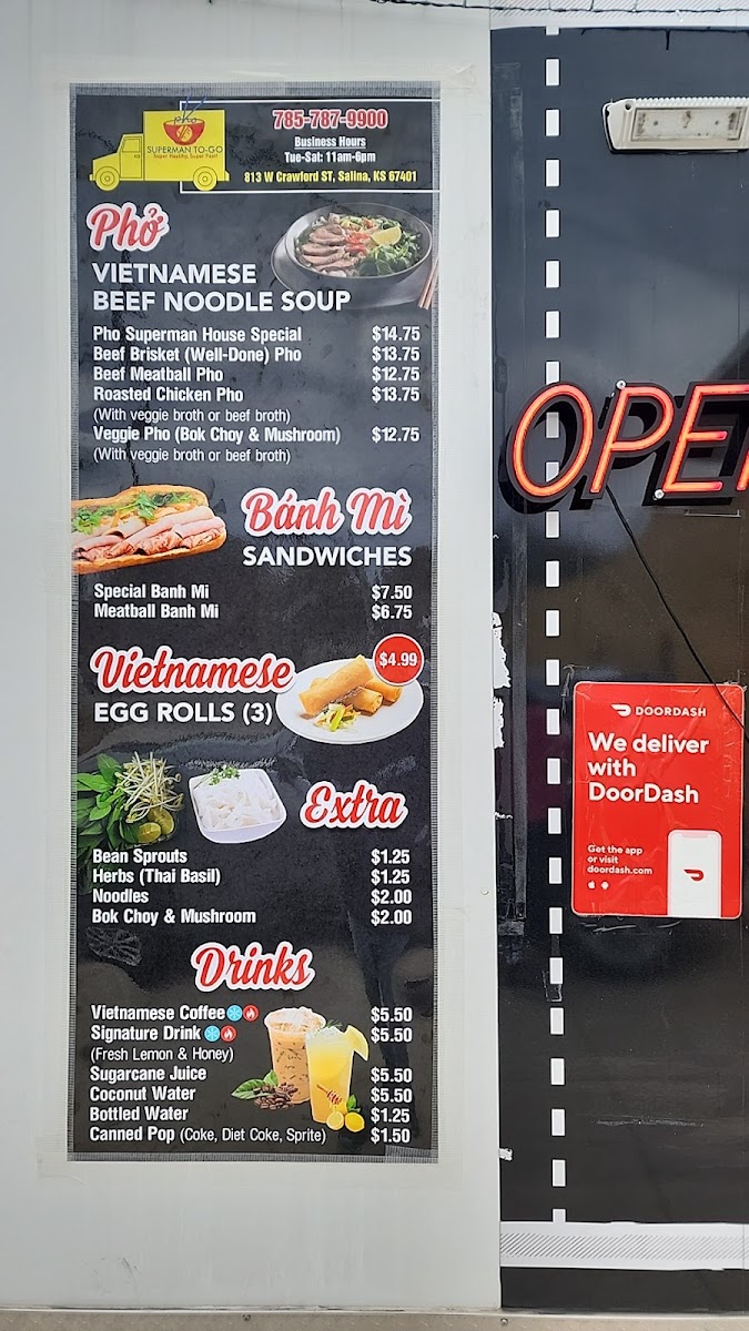 Pho Superman To Go offers a diverse menu that blends traditional Vietnamese flavors with a modern twist. Their pho selection is impressive, featuring options like the Superman House Special Pho, Chicken (Roasted) Pho with Veggie Broth, and Beef Brisket Pho (Well-Done), with prices that cater to different tastes and preferences. For those who prefer something different, there are also Chicken (Roasted) Pho with Beef Broth and Beef Meatball Pho. The ramen section offers healthy choices such as the Healthy Veggie Ramen with Veggie Broth, Healthy Brisket Ramen, and a variety of Healthy Roasted Chicken Ramen options with either beef or veggie broth. Additionally, the restaurant serves refreshing cold drinks like Iced Signature Drink, Sugarcane Juice, and Bloomin’ Berry - Probiotic Quencher, alongside hot beverages such as Vietnamese Coffee (Hot) and the signature Hot Signature Drink. For a light snack or side, customers can enjoy crispy Vietnamese Egg Rolls paired with a choice of sauces like Hoisin Sauce or Eggroll Sauce. Special menu items, such as the Cold Cut Bánh Mì, offer a delicious sandwich option. Whether you're in the mood for a hearty pho, a warm bowl of ramen, or a refreshing drink, Pho Superman To Go offers something to satisfy every craving, with prices that make it an excellent choice for a flavorful meal on the go.